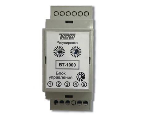 Блок ВТ-1000 рассчитан на подключение до 25 вентиляторов, работающих при напряжении 220 В с крыльчаткой диаметром 45 мм или до 80 вентиляторов с крыльчаткой диаметром 30 мм с термостатами Techno КТ 200, Techno КТ 300, Siemens RAB11.1 и RDF310.2 и их аналогами.