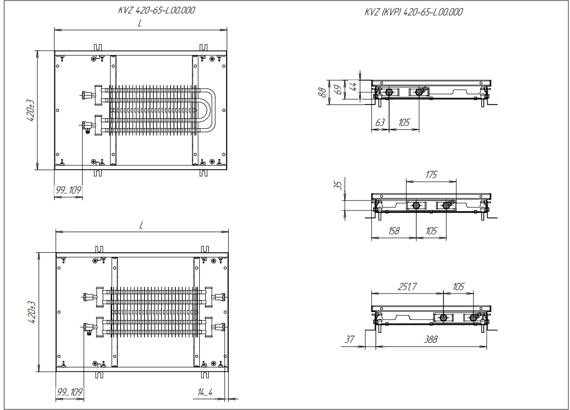 - Встраиваемые конвекторы длиной до 2400 мм - цельные, конвекторы свыше 2400 мм состоят из нескольких секций.