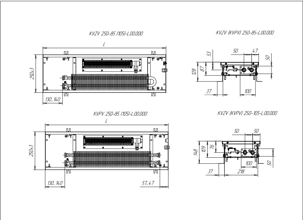 - Встраиваемые конвекторы длиной до 2400 мм - цельные, конвекторы свыше 2400 мм состоят из нескольких секций.