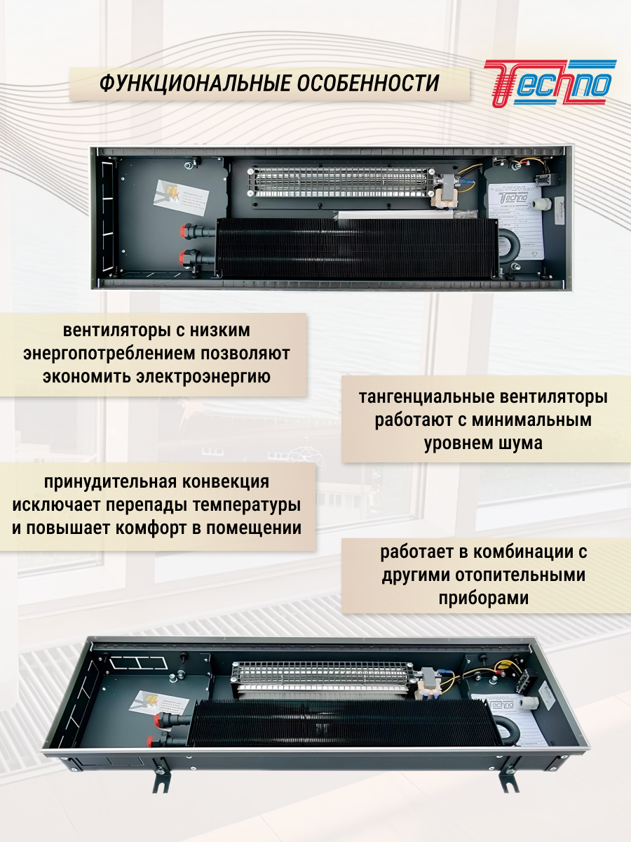 КОМПЛЕКТАЦИЯ ВНУТРИПОЛЬНЫХ КОНВЕКТОРОВ TECHNO